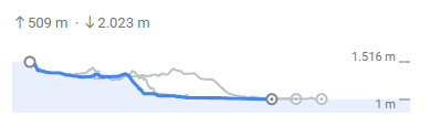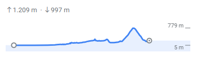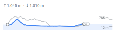Ride 1 - approx. 22kms/14 miles, mostly downhill with approx. 85m/280ft of elevation gain.