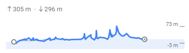 Ride 1 - approx. 38kms/24 miles, uphill with approx. 330m/1080ft of elevation gain.