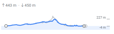 Ride 2 - approx. 19kms/12 miles, mostly downhill with approx. 80m/260ft of elevation gain.