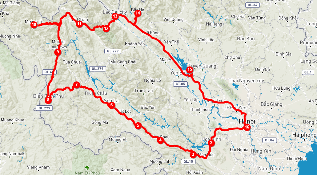 We pick you up at 7h30AM from your hotel in Hanoi we drive Southwest to Luong Son. The gateway to the outstanding mountainous area of northern Vietnam, upon arrival Luong son, we start  riding through  on  undulating tarmac road with stunning  view of mountain, valleys, sugarcane farms and rice paddies. We would have a stop enroute for refresment and lunch meals. After lunch , we continue our trip along the bank of Da river to Hoa binh City. Stop on the way to visit one of hug Highdro power of Vietnam, supplying 30% of total Electricity  .