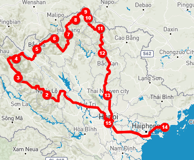 There is a market daily in the town center of Meo Vac used mainly by the White Hmong, Tay, and Lo Lo hill tribes. Women dressed in their brightly colored traditional clothing walk into the town carrying their bamboo woven baskets laden with corn and vegetables. Today we follow a remote mountain road to Bao Lac. After a 5km uphill cycle, we make a 20km descent the follow a fairly flat road for the next 10km. The surrounding landscape with predominantly limestone formations is a surreal vista of peaks, troughs, towers, and caves. The crops and dwellings seem to perch precariously on the hillsides. There’s a relatively gentle uphill climb of 250m before we descend for the final 30km along flat terrain. We will pass people from the local minority communities along the way dressed in their vibrant tribal costumes. We stay tonight in Bao Lac.