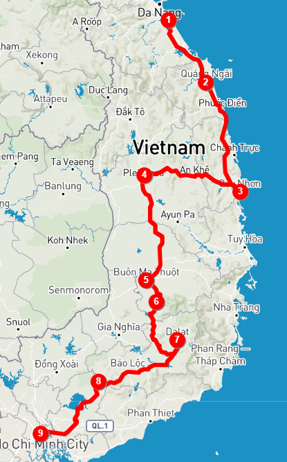 Breakfast at the hotel.,We follow the road with rolling hills, coffee and rubber plantations towards Buon Ma Thuot, “The Coffee Capital of Vietnam”. On arrival, we cycle around the city and enjoy a coffee experience at a local cafe. At the cafe, we can learn about the coffee making process and the various types of coffee.,Overnight in Buon Ma Thuot.